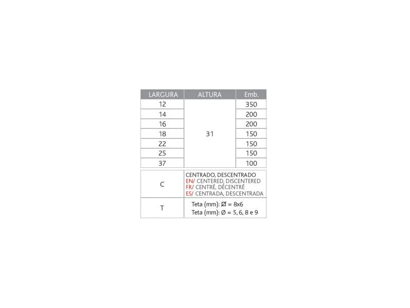 Esquadro centrado ou descentrado em alumínio;